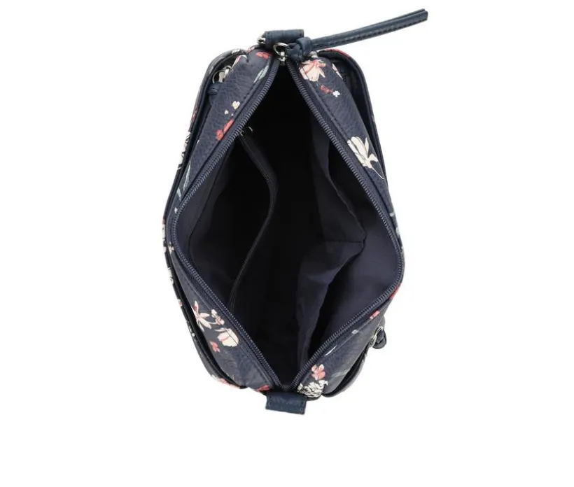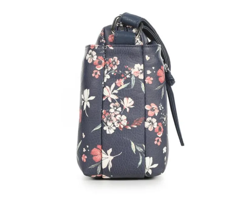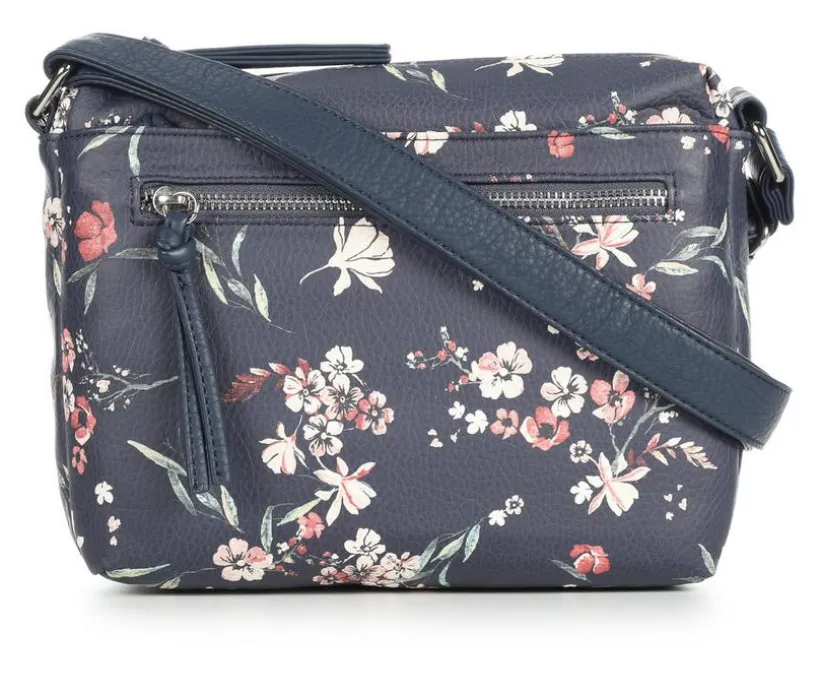 Add a playful pop to your everyday style with this floral crossbody bag, crafted to keep you effortlessly organized on the go. The pebbled synthetic exterior is adorned with an allover floral print that brings charm to any outfit, while the compact shape is loaded with utility. Multiple zip compartments offer secure storage, and an adjustable strap lets you wear it your way. Ideal for weekend outings or busy days, this bag combines beauty with everyday function.