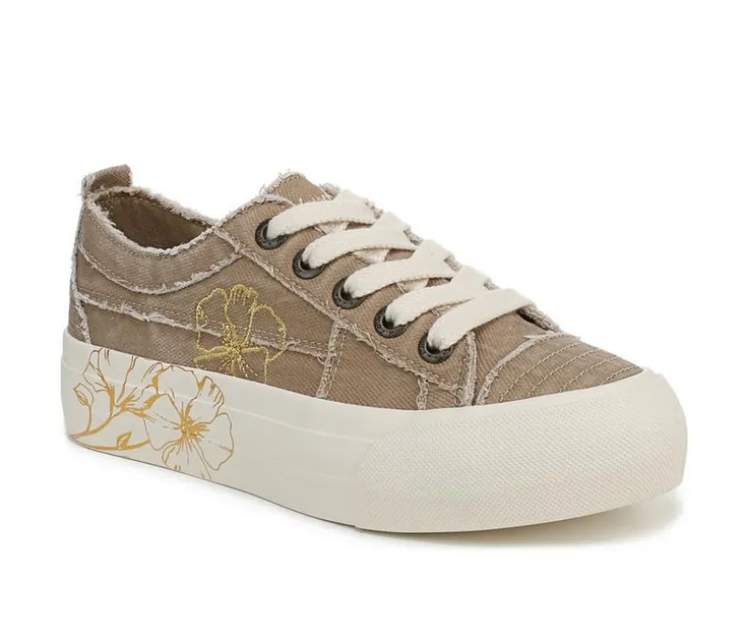 This platform sneaker adds playful detail to a bold everyday silhouette. A canvas upper features decorative floral embellishments that extend onto the outsole. Lace-up styling with metallic eyelets provides a secure fit. The round toe includes a textured cap for durability. Finished with a platform sole for standout height.