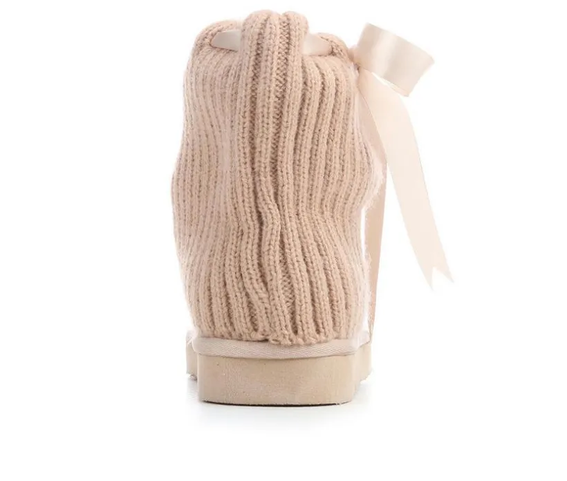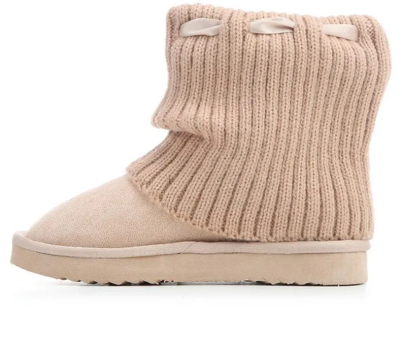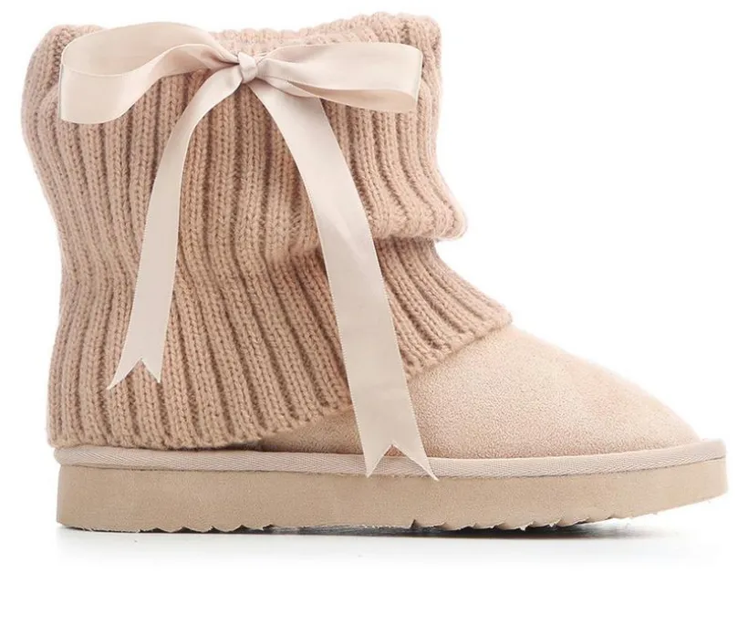Cozy charm meets playful detail in the Girls’ Steve Madden JJaxie Boots. This winter-ready style features a soft suede-like upper with a fold-over ankle cuff that’s finished in a sweater-knit look for extra warmth. A sweet bow tie wraps around the ankle for a fun, fashionable touch, while the cushioned lining keeps her feet snug in cold weather. With a sturdy outsole for traction, these boots are perfect for everyday winter adventures.