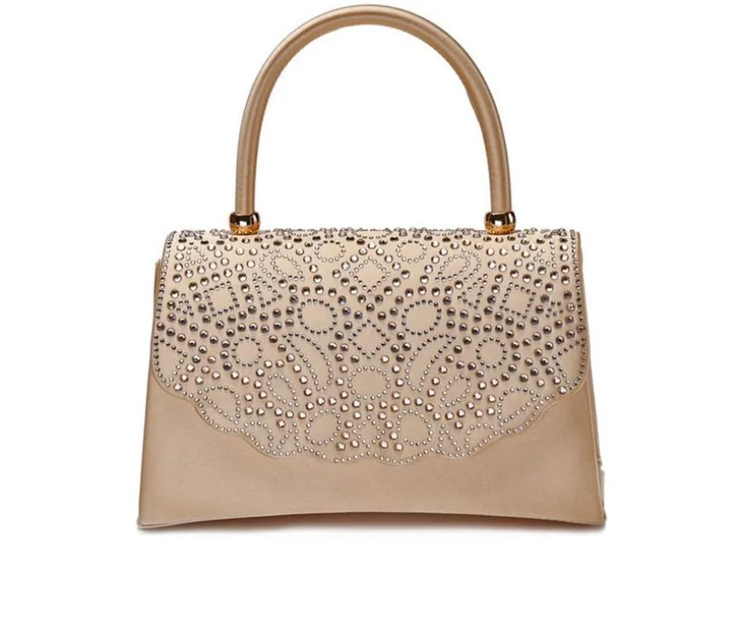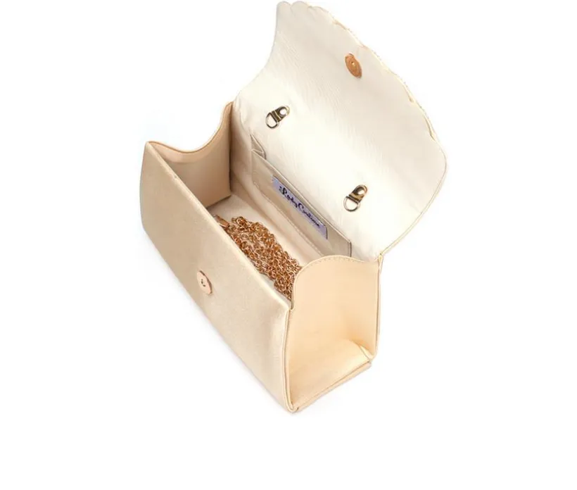 Elegance shines in every detail of the Kaite Bag, a timeless handbag designed to add sparkle to special occasions. Featuring a scalloped flap covered in dazzling rhinestones, this structured silhouette offers refined charm and evening-ready flair. The sturdy top handle adds a classic touch, while the interior holds essentials securely. Ideal for weddings, parties, and formal events, this bag is a chic finishing piece.