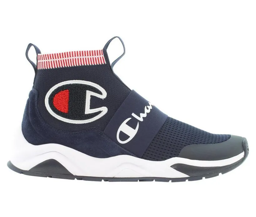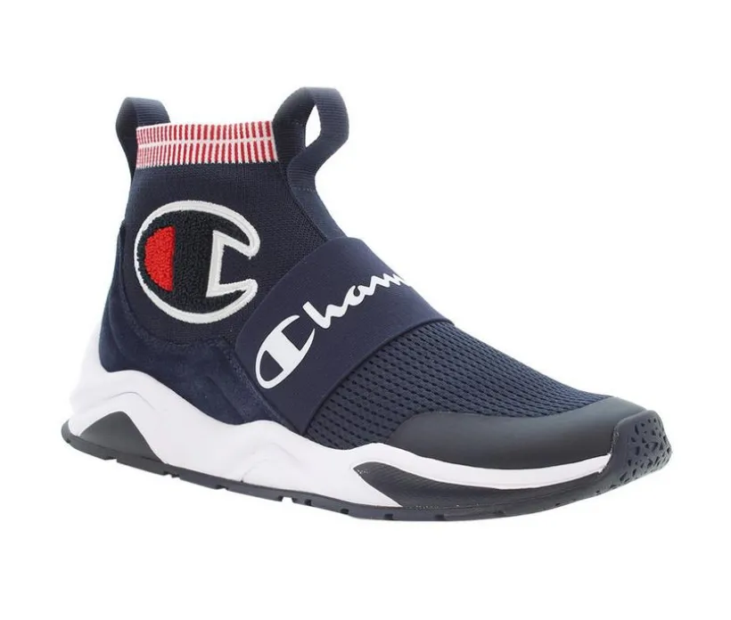 Slip into stylish comfort with the Champion® Rally Pro sneakers. High-top silhouette with stretch knit material construction, paired with rear and front pull tabs, combines for an effortless wear.
