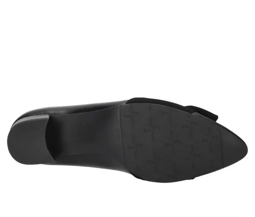 A feminine dress pump with a chic bow accent and clean, tapered lines. The sleek upper and pointed profile sharpen any outfit, while soft cushioning supports extended wear. A graceful mid heel delivers height with a stable, confident feel.