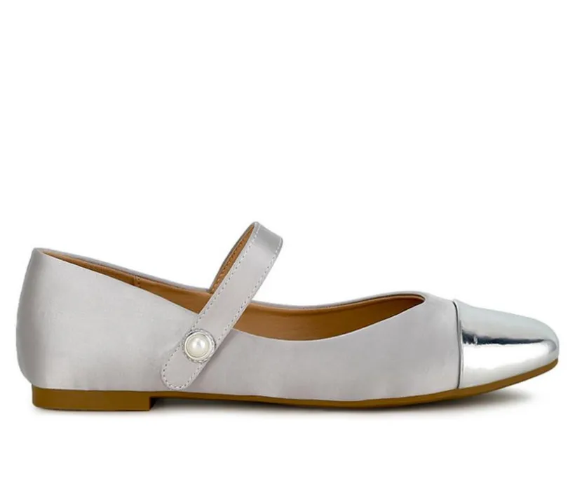 A fusion of sophistication and style, these Mary Janes feature a glossy patent toe cap that adds a touch of elegance. Crafted with satin, they offer a luxurious feel. Perfect for both formal occasions and chic events, these shoes effortlessly combine timeless charm with contemporary allure.