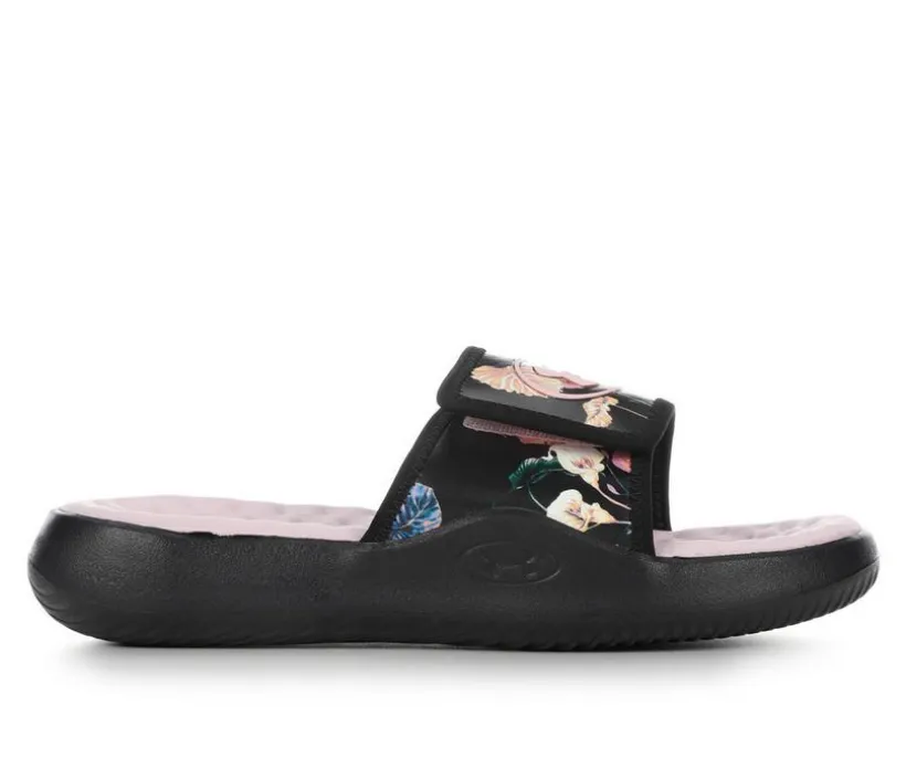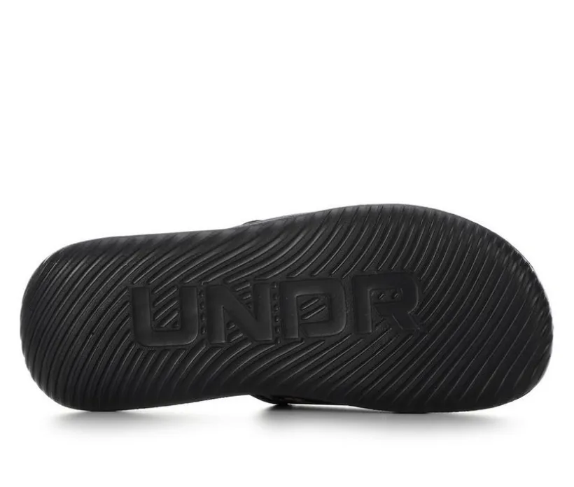 This Under Armour slide sandal blends casual ease with standout style, featuring a floral-printed synthetic upper and the iconic UA logo across the strap. Designed with a contoured footbed and soft lining, it delivers comfort whether you’re poolside, post-workout, or on the go. The sturdy outsole ensures dependable traction, making it a reliable option for everyday wear.