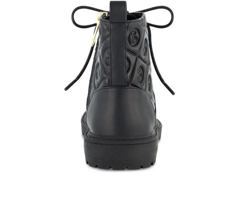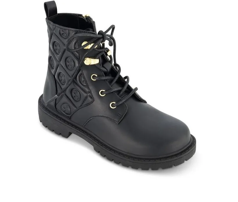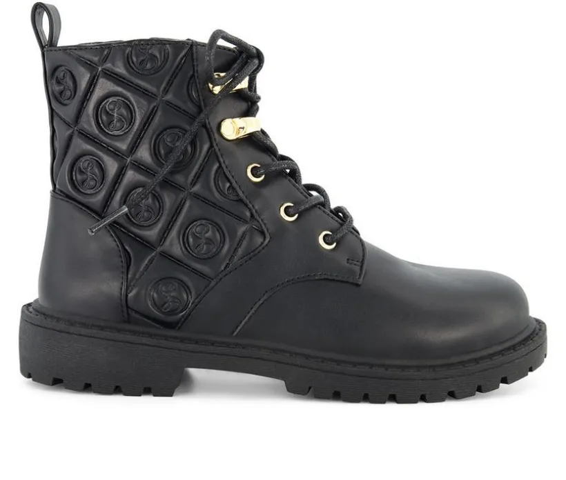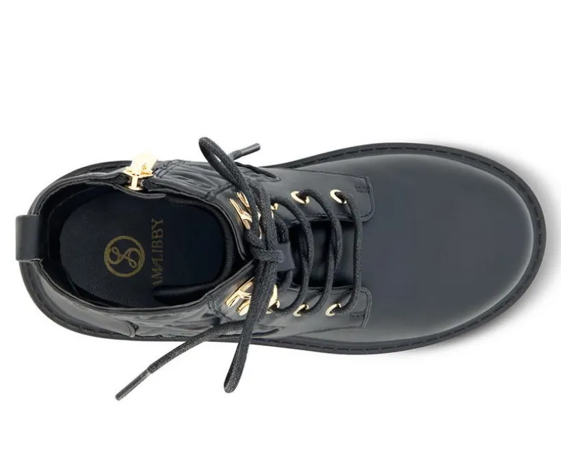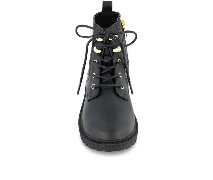Give her outfit some edge with this quilted combat boot that blends fashion and function effortlessly. The classic lace-up front is paired with a side zipper for easy on and off, while the quilted back panel adds a touch of bold texture and standout style. With a cushioned interior and grippy outsole, this boot is built to keep up with school days, weekend wear, and everything in between.