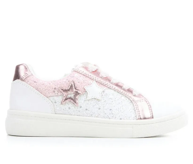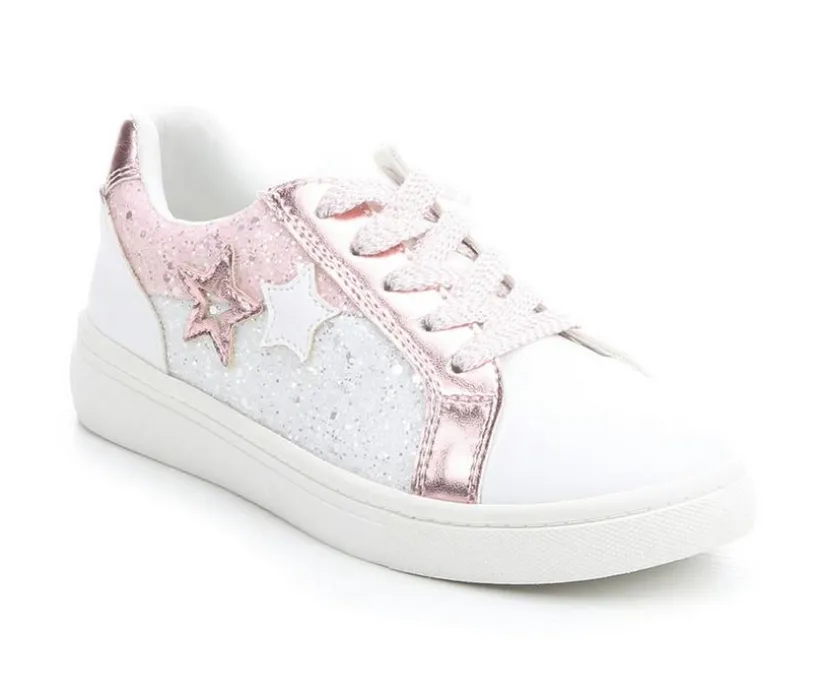 This girls’ sneaker brings sparkle to every step with a glittery finish and fun star accents that shine bright. Designed with a low-profile silhouette, it features a cushioned footbed and soft lining for all-day comfort. The lace-up closure gives a secure fit while the sturdy platform-style sole adds both height and stability. Whether dressing up or down, this playful pair is a go-to for everyday glam.