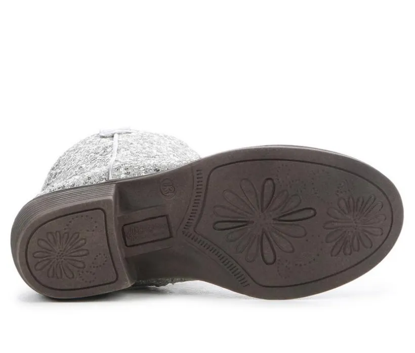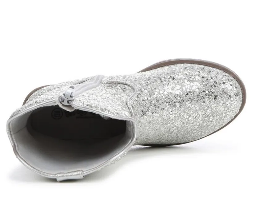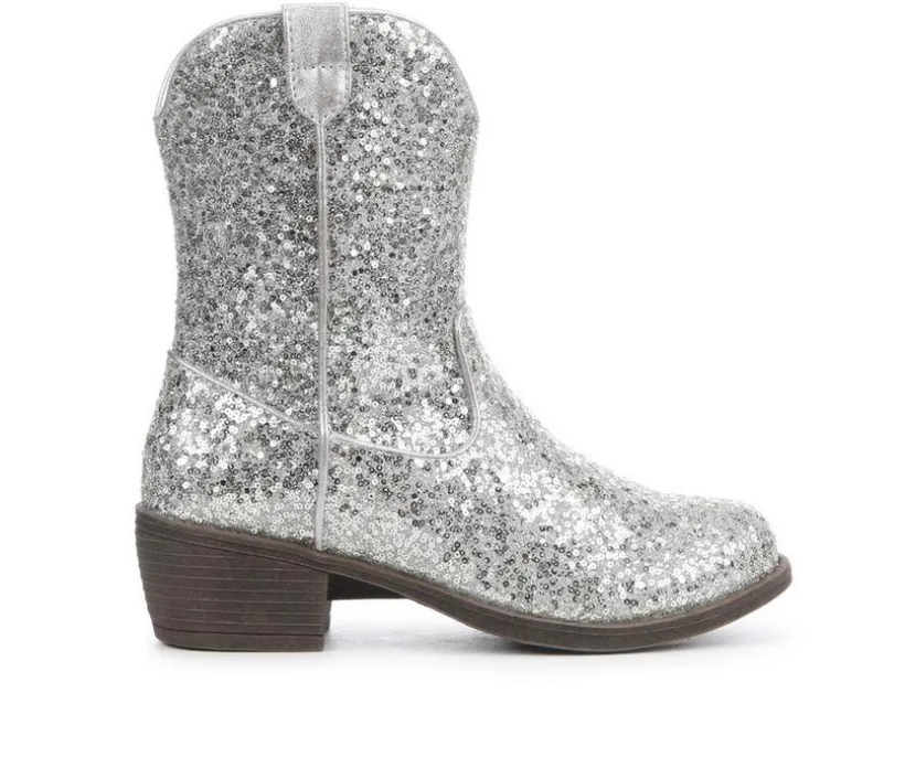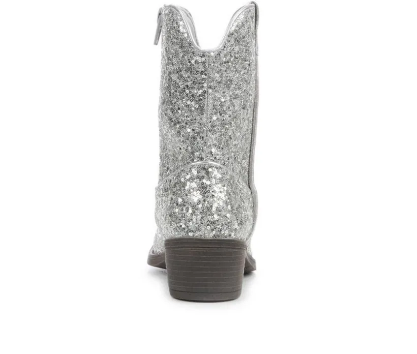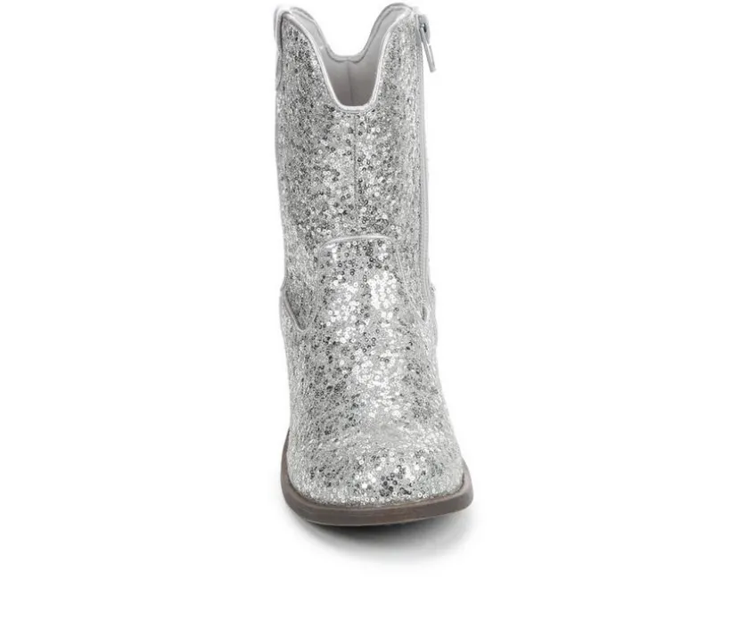 This kids’ western boot adds a sparkle to every step with its all-over glitter finish and classic cowboy silhouette. Designed for both dress-up and day-to-day flair, it features a smooth synthetic upper, side pull loops for easy on and off, and a low stacked heel for just the right touch of lift. Whether worn to a party or paired with jeans, it’s a fun twist on a classic style.
