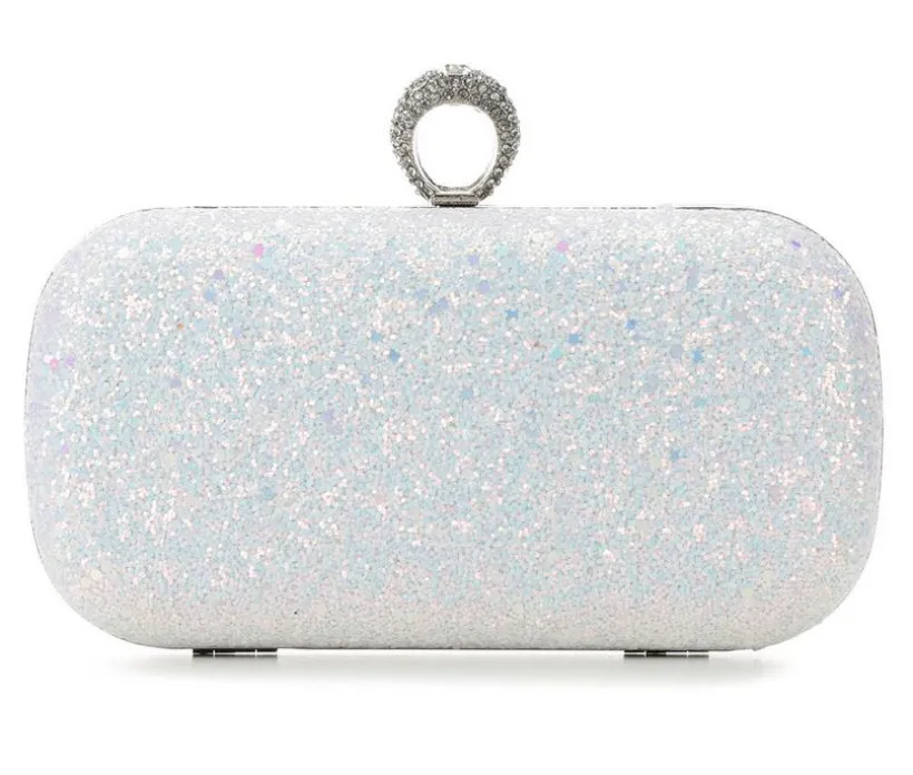 - Main compartment features rhinestone ring opener and internal card slot