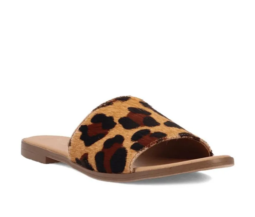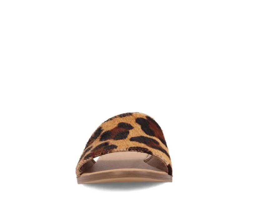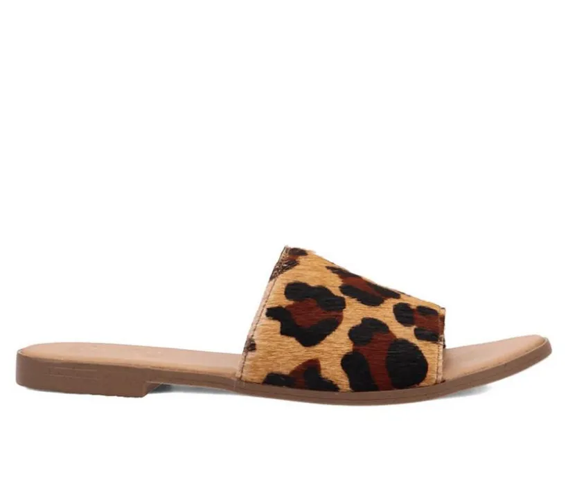 This laid-back slide sandal brings a playful western touch to warm-weather outfits with its bold cow-print upper. The wide band offers a secure feel while keeping the design simple and easy to wear. Perfect for casual days, weekend outings, or adding a fun twist to everyday basics.