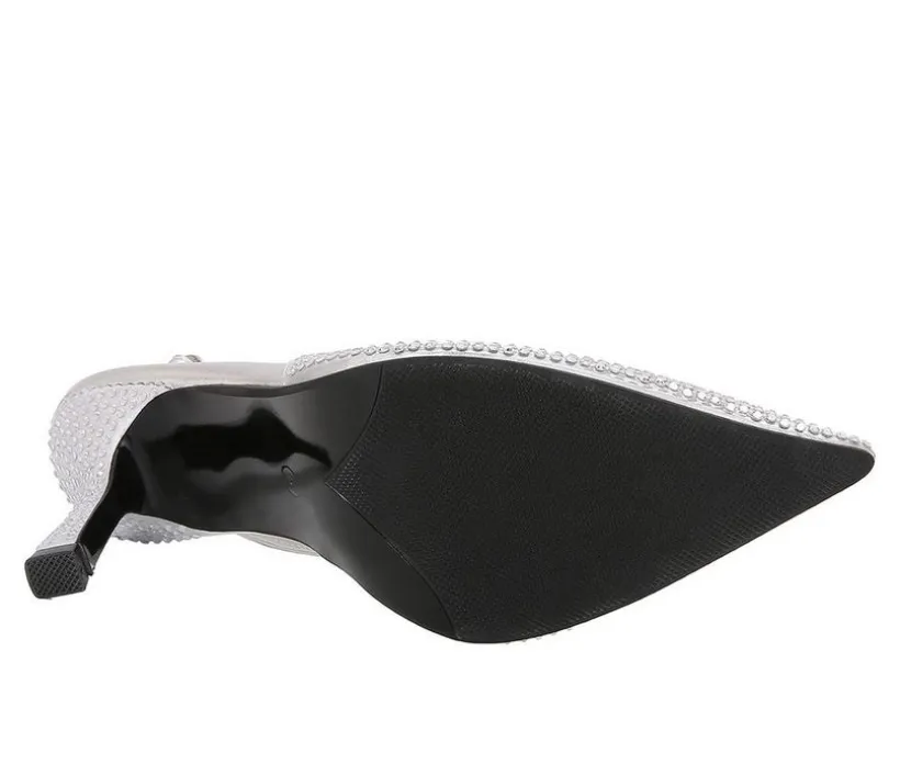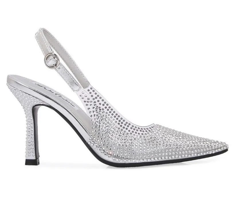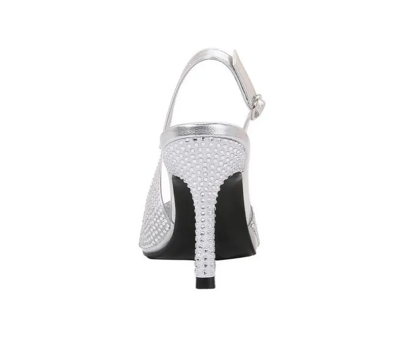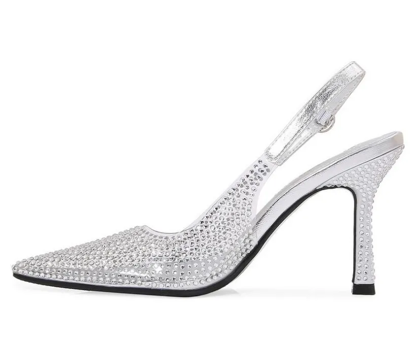 Elegant and eye-catching, these heels bring a sophisticated sparkle to any occasion. Featuring a man-made upper with glittering accents, they’re designed with a pointed toe silhouette and slingback strap for a timeless finish. The high stiletto heel adds graceful height, while the secure buckle closure ensures a comfortable fit from day to night.